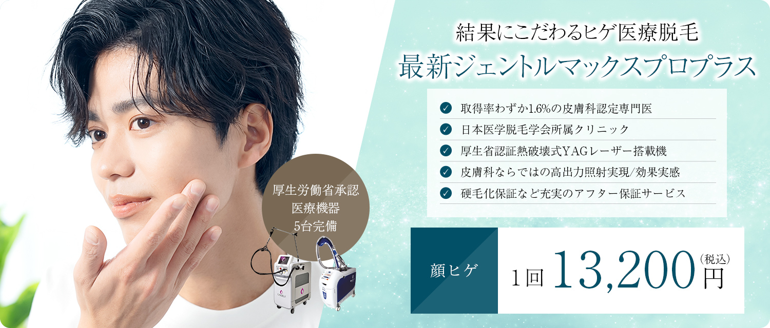 ヒゲ脱毛後に赤みや炎症などが出ても、医療機関としてすぐに診察・治療が可能なので、初めての方でも安心です。敏感肌や肌荒れしやすい方もご相談ください。