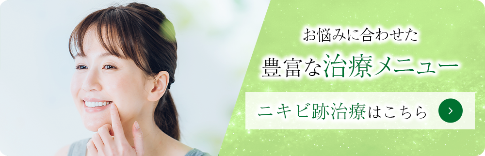 ニキビ跡ができると、元に戻す治療法がないため、治療が難しくなります。目立つニキビ跡を残さないためにも、早めにニキビ治療を行い、ニキビをつくらないことが1番大切です。